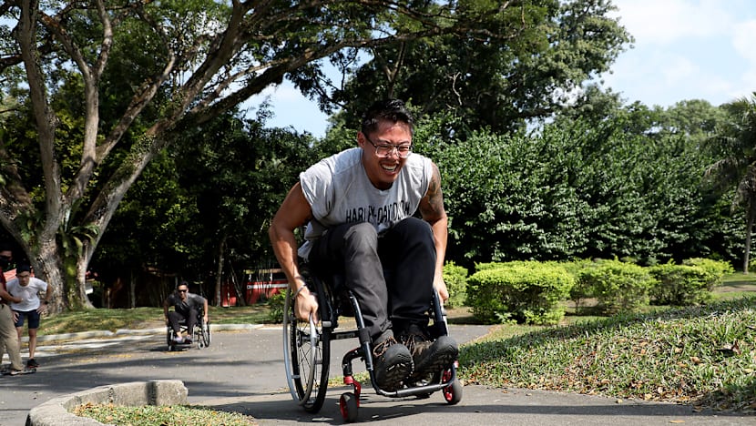 The use of wheelchairs aims to raise awareness on the difficulties of living with disabilities and in the process, Mr Tay hopes to raise S$10,000 in donations from the public, which will go to SPD, a local charity which supports people with disabilities.