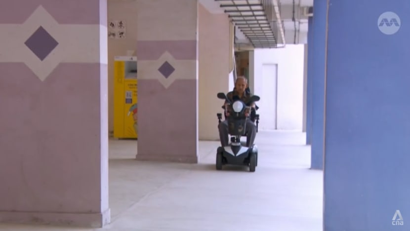 “My legs – I cannot walk. Doctors sent me to social workers, who interviewed me. They then sent me to a shop (selling personal mobility aids),” he told CNA. “I was taught to drive a mobility scooter. They watched as I drove, then I passed (their assessment), then they allowed me to have a scooter.”