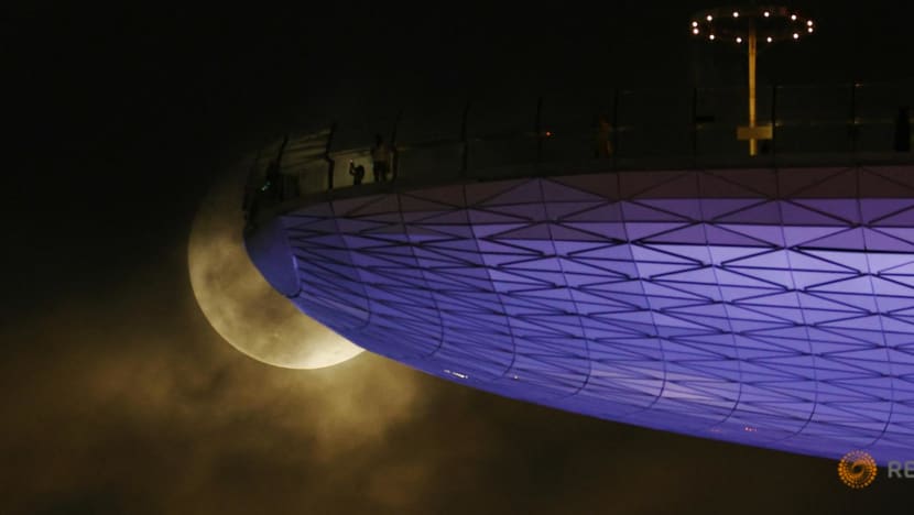 People watch the April's full moon, also known as the Pink Moon, rising behind the clouds in Singapore on Apr 24, 2024. (Photo: AFP/Roslan Rahman)