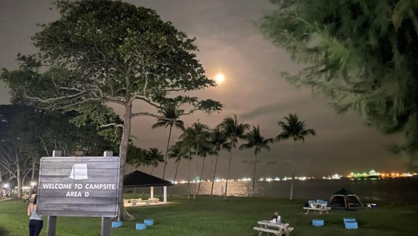 Mr Heng enclosed a photo taken by a Bedok volunteer at a campsite in East Coast Park. The moon shone brightly and dozens of ships were also seen illuminating the horizon.