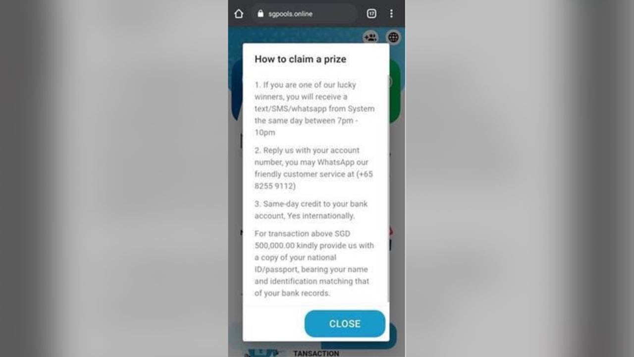 Upon verification with Singapore Pools, the victims would also realise that neither the websites nor the apps belonged to Singapore Pools.
