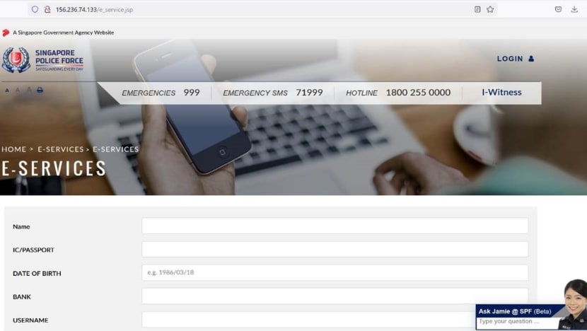 After providing a URL link, the second scammer would ask the victim to fill in their personal and banking details on a phishing site resembling the official website of the police force.