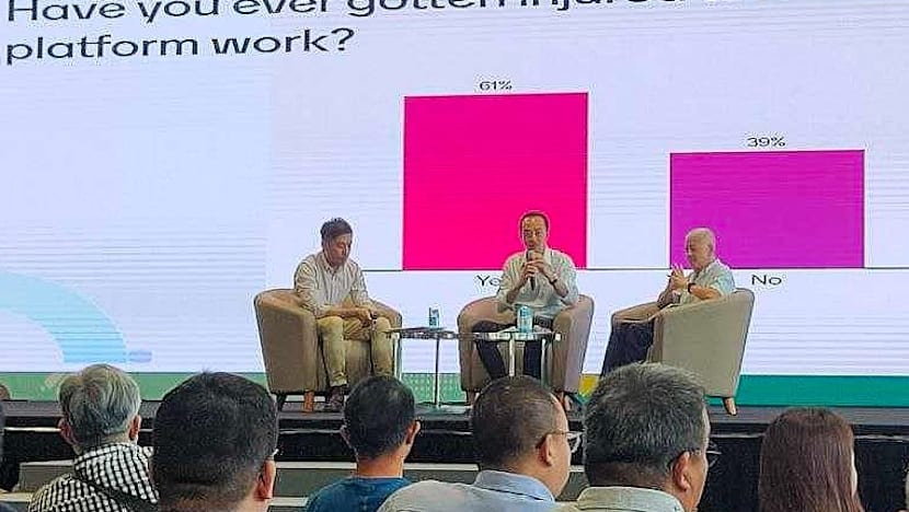 Mr Abdul Hady’s experience is fairly common, with about 60 per cent of 61 respondents in a straw poll conducted at Tuesday’s session saying that they have been injured while doing work for platform companies.