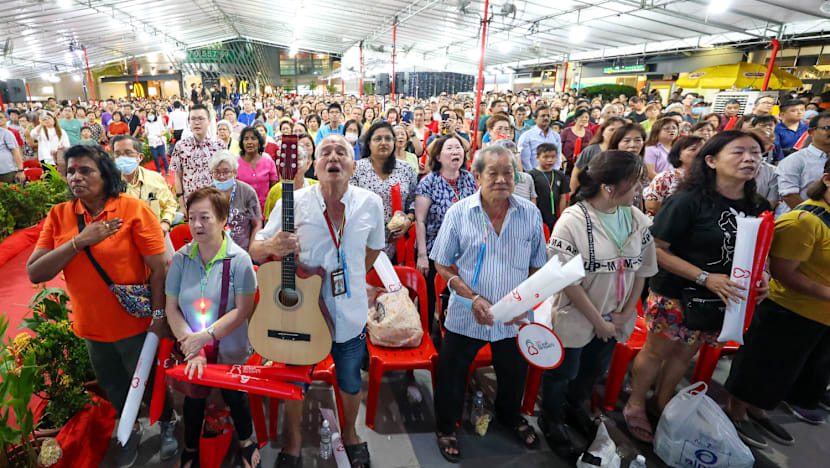 At least 100 more curious passers-by stood around the periphery and stuck around to watch the hour-long ceremony. Most of them had had dinner at Yew Tee Point next door or were heading home from work.