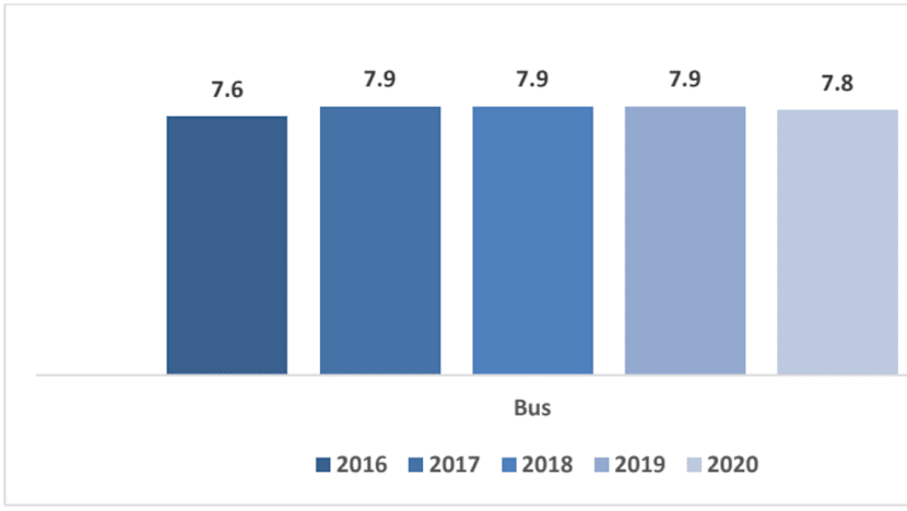 Bus services saw a slight drop in mean score from 7.9 in 2019 to 7.8 on 2020.
