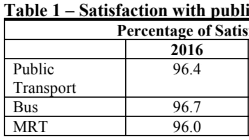 The percentage of people who said they were satisfied with public transport was 97.6 per cent, lower than the high of 99.4 per cent in 2019.