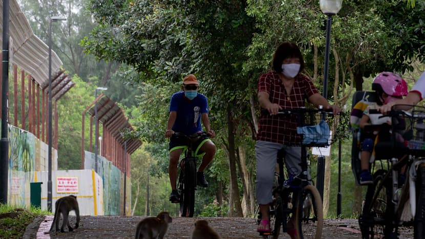 Park connector users should keep a 2- to 3-metre safe distance from the monkeys, and parents should ensure their children do not taunt the animals.