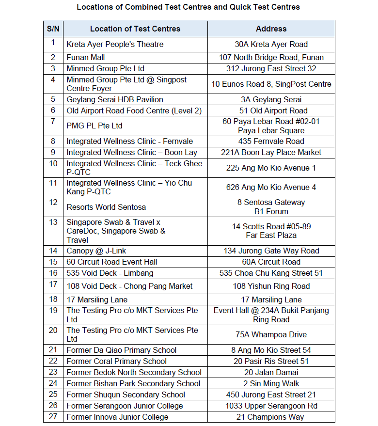 Quick Test Centres to allow supervised antigen rapid tests, infection record to be updated within 30 minutes