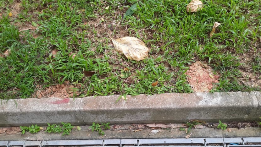 Two workers - one wearing a Pasir Ris-Punggol Town Council polo shirt - were seen inspecting drains and scraping at grass patches when CNA visited the affected housing blocks on Wednesday.