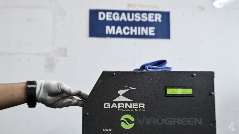 When asked why both degaussing and crushing are needed, Mr Quck said degaussing addresses data privacy concerns, while destroying the hard disk assures clients that the data is irretrievable.