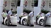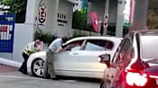 In the video widely circulated online, a white car was stopped from entering the primary school. The car then inched forward several times, pushing against the security officer standing in front of it.