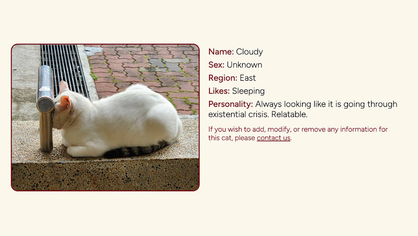 Less than a day later, the website — which had 20 cats at the time of the Redditor’s post — was quickly populated with crowd-sourced information of close to 100 cats on Tuesday (Jan 17).