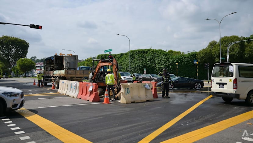 When CNA visited the condominium on Friday morning, a lane in the centre of Upper Thomson Road was blocked off for works.