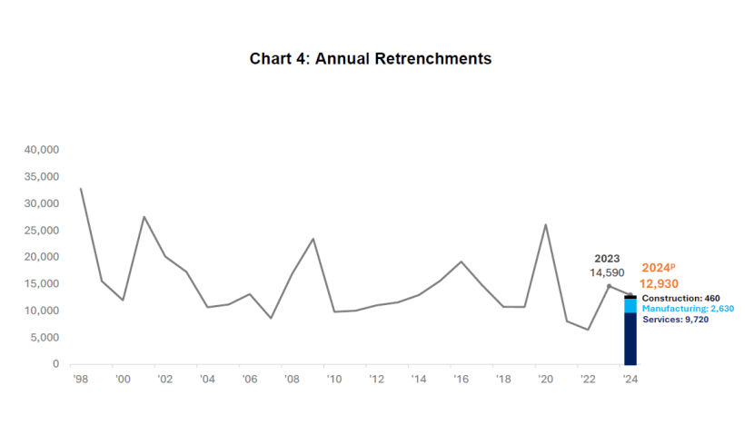 The incidence of retrenchment also declined from 6.7 retrenched per 1,000 employees in 2023 to 5.8 in 2024.