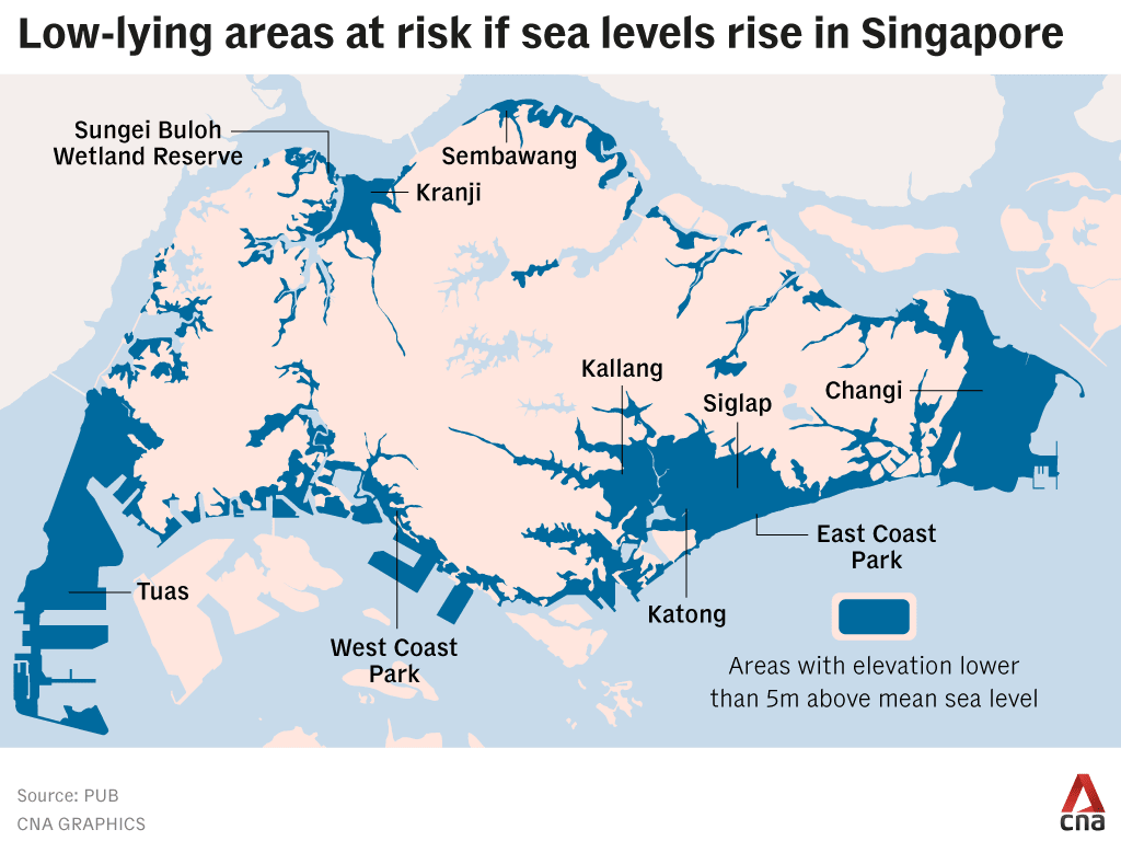As a low-lying nation with 30 per cent of its land less than 5m above mean sea level, Singapore may lose important swathes of land even if sea levels only rise by 1m by 2100, as projected in studies.