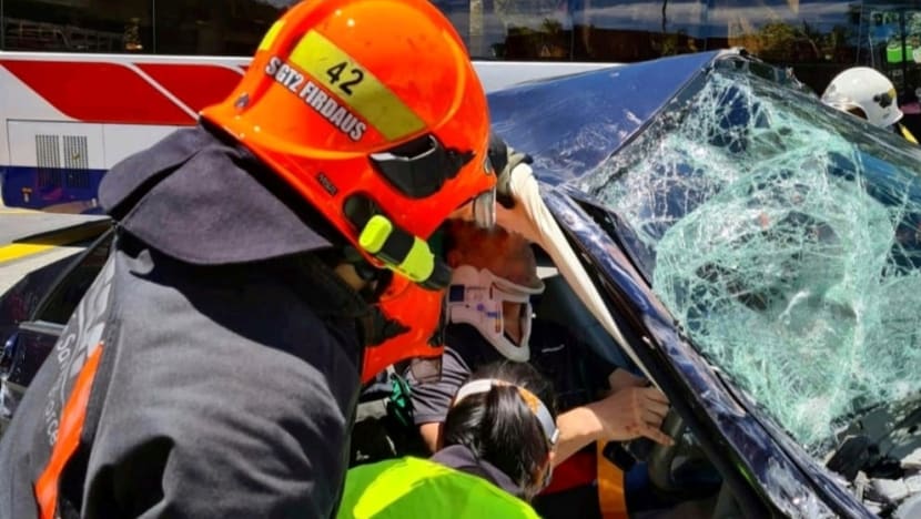 "Due to the car's precarious position, SCDF firefighters had to first stabilise it to minimise its movement during the rescue operation. This is important so as not to aggravate the condition of the trapped driver," SCDF added.
