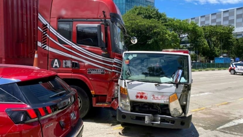 A trailer was also seen diagonally blocking several lanes along Benoi Road.
