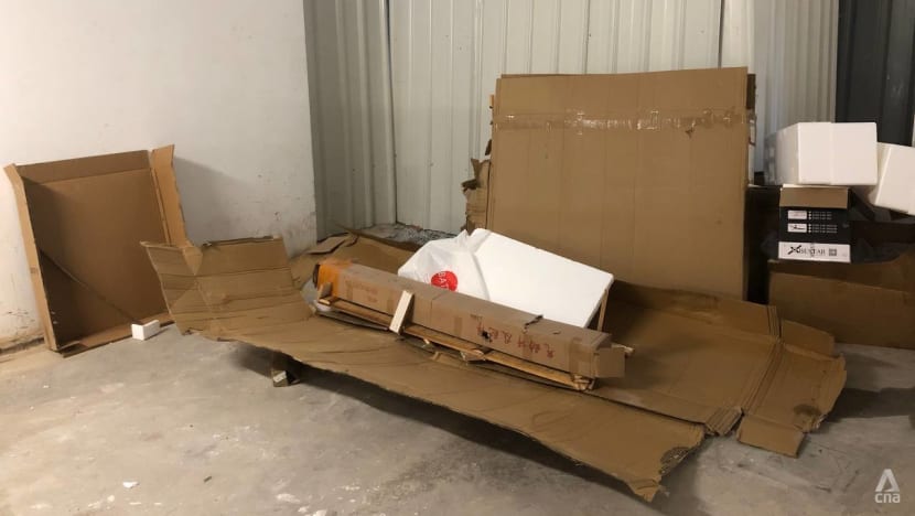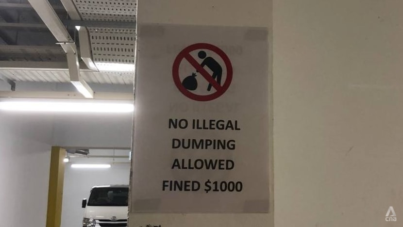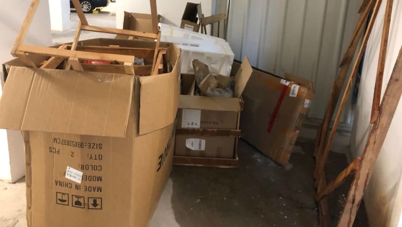 When CNA visited the block in question on Wednesday (Jun 12), there were similarly several large cardboard boxes as well as wooden frames left at a basement car park, despite a sign warning that illegal dumping would come with a S$1,000 fine.