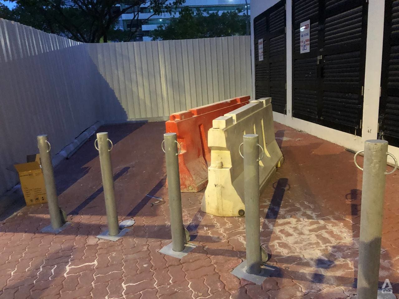 The bins, however, were not there when CNA visited on Wednesday. The spot was also blocked off by metal poles, which were put up about a week ago, according to residents.