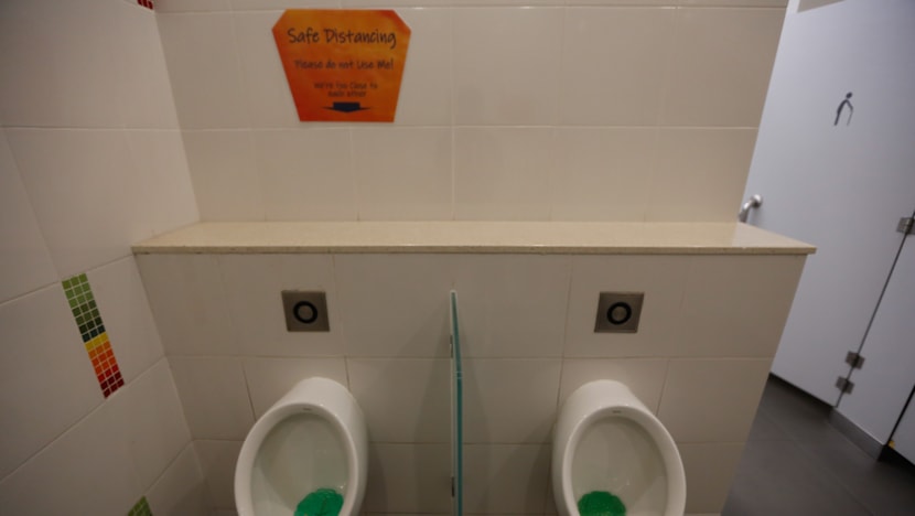 Urinals have been marked out as part of safe-distancing measures on March 27, 2020. Yong Jun Yuan/TODAY