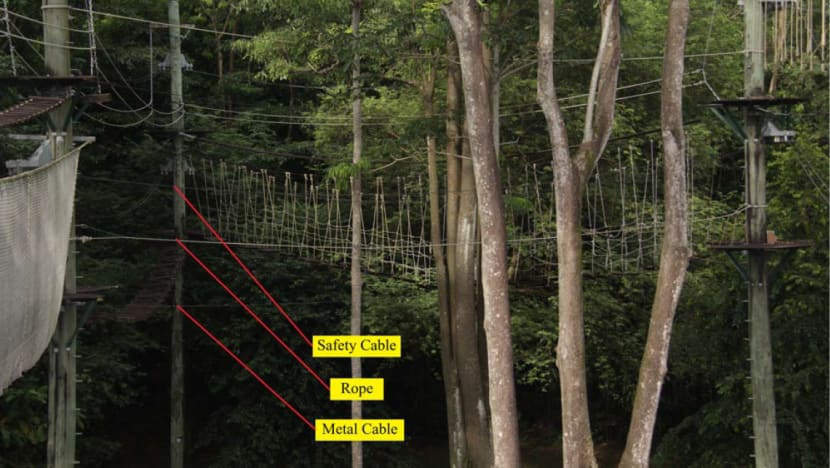 According to the prosecution, a participant who had worn the harness properly would have been able to climb back onto the obstacle more easily as the person would have been in a higher position. As Jethro's leg loops were loose or unbuckled, he was in a lower position and unable to reach the foot cable with his legs easily, said Mr Ng.