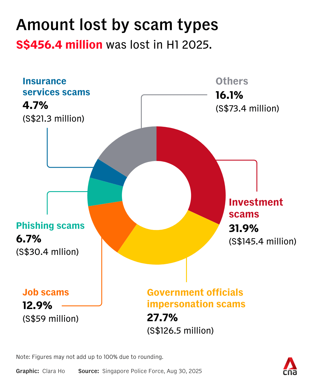 The amount lost to such scams rose by 88.3 per cent to S$126.5 million, the second-highest loss among all scam types.