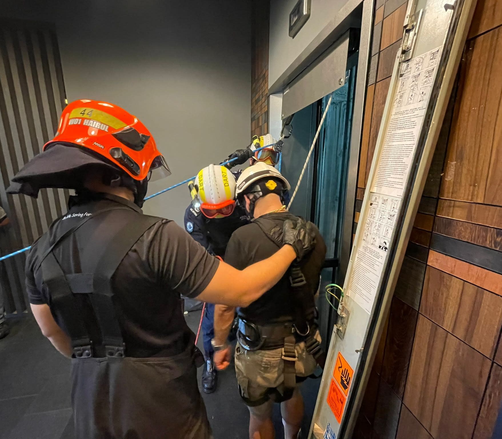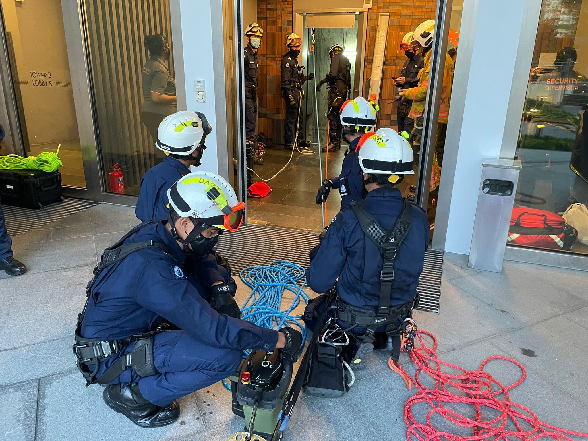 SCDF disaster team rescues 3 people trapped in lift at Junction 10 mall using pulleys and ropes