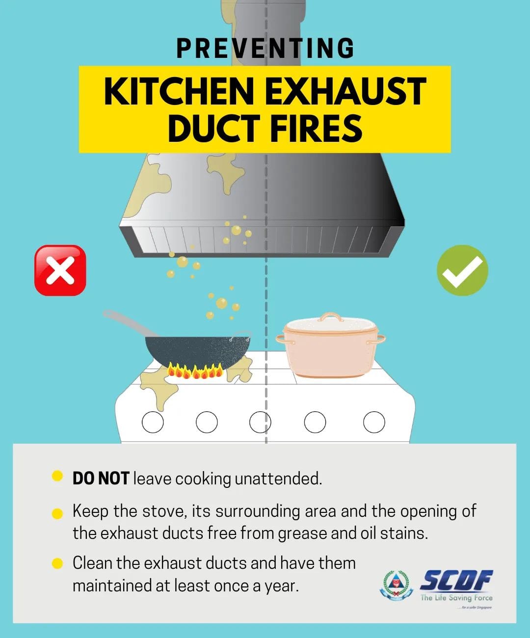 SCDF provided an infographic advising members of the public, particularly stallholders, on how they can prevent kitchen exhaust ducting fires.