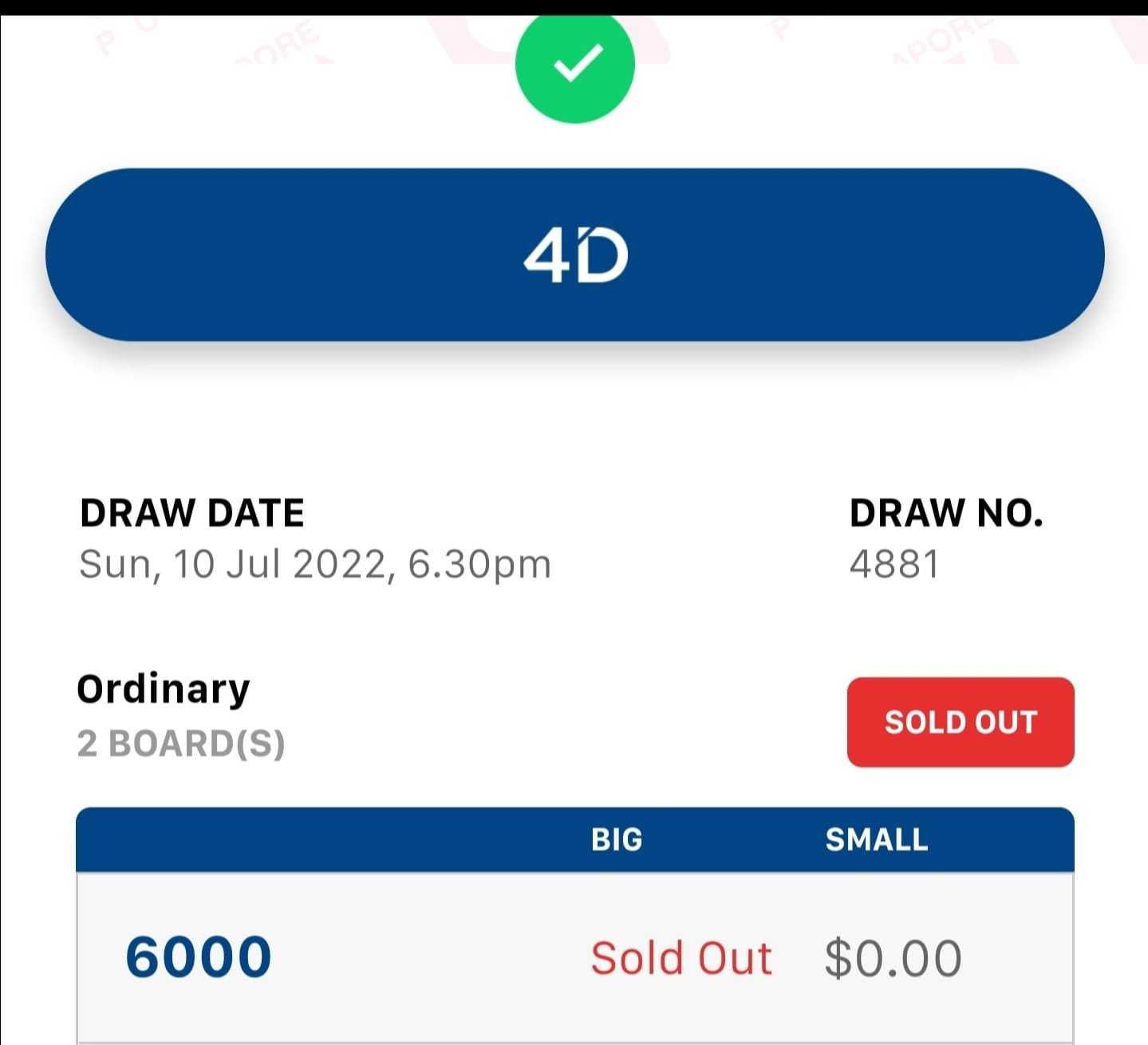 Less than two hours later, a Facebook user posted an image in the comments section, which showed that the number had been sold out on the Singapore Pools lottery website.
