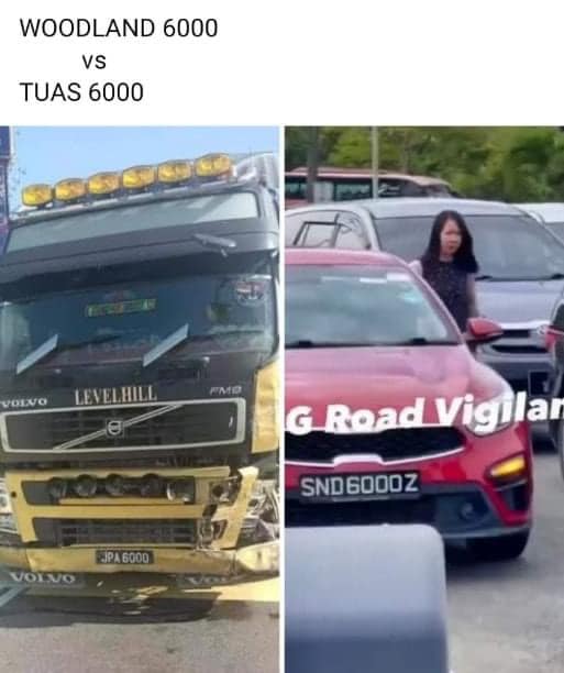 Others referred to a lorry that ploughed through 11 vehicles on the Causeway last Thursday morning, noting that both the Volvo lorry and the Kia sedan have "6000" in their licence plate numbers.