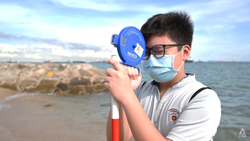"We ask our new classmate Haziq," Mr Ang said over a microphone, eyes glinting behind his glasses. "If I have a current of water that is moving along the coast, and you have this sort of structure that is protruding outwards, how do you think it will affect the coast? Very challenging question."