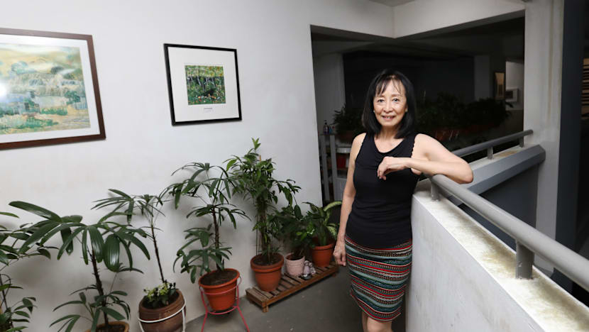 The “common corridor garden”, as the 66-year-old affectionately calls it, is also lined with her potted ferns, transforming the originally bare space on the fourth level of 335B Anchorvale Crescent into a mini art gallery surrounded by greenery.