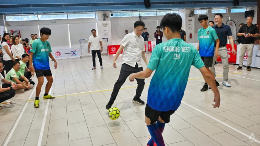 At the sports fiesta at Anchorvale Community Club, residents tried their hand at various sports, with Mr Wong himself playing a short game of pickleball and football.