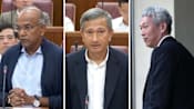 Singapore's Home Affairs and Law Minister K Shanmugam, Foreign Affairs Minister Vivian Balakrishnan and Lee Hsien Yang, brother of Prime Minister Lee Hsien Loong. (Photos: Screengrabs, AFP/Roslan Rahman)