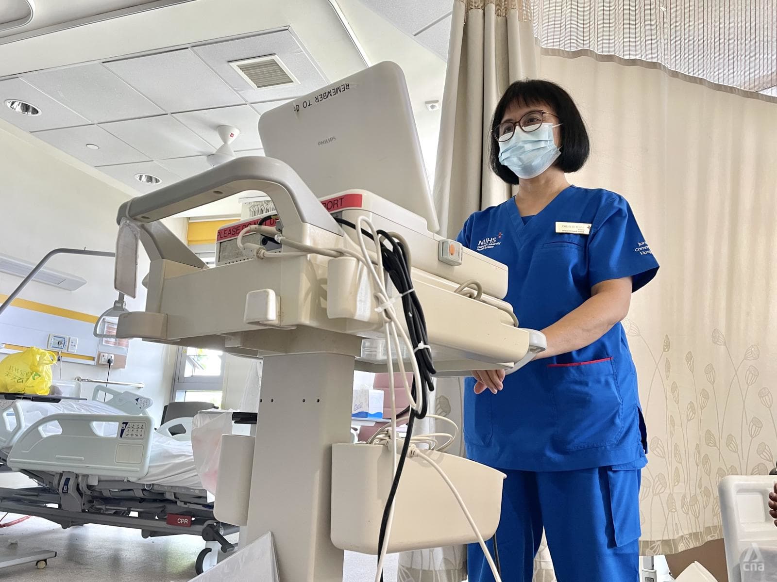 As Ms Cheng takes CNA on a tour of the ward, she walks at a brisk pace, while assuredly pointing out and explaining aspects of her job.