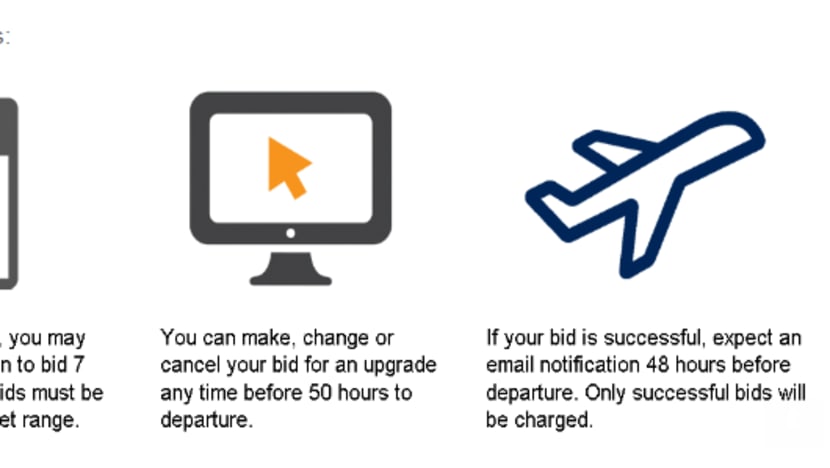 These passengers will receive an email invitation to bid for a seat upgrade seven days before their flights are due to depart. Each flight will have an assigned minimum and maximum bid value, and passengers can change their bid amount up to 50 hours before their flights.