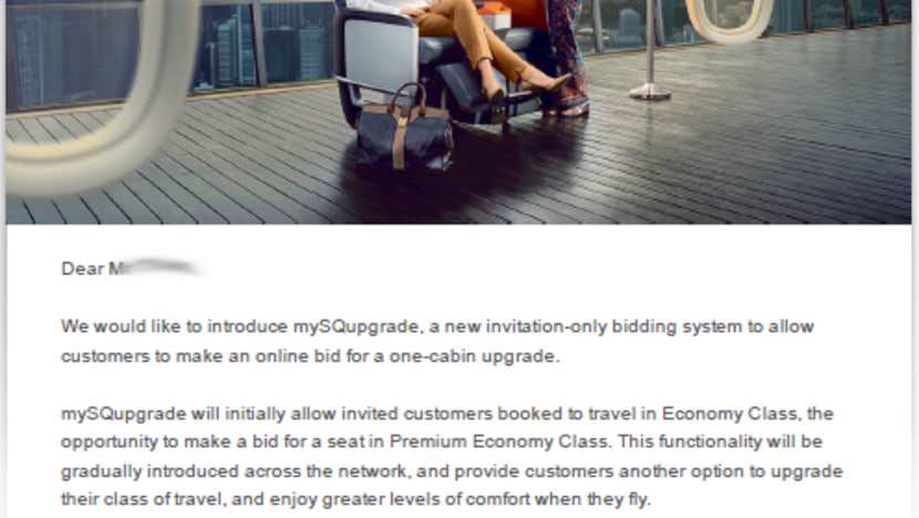 The mySQupgrade programme was emailed out to some KrisFlyer members on Monday (July 4). Photo: Singapore Airlines