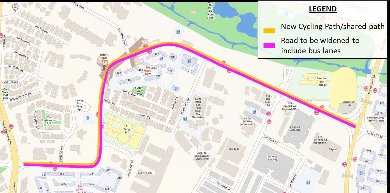 Construction will begin in the second half of this year on a new TPC along Sin Ming Avenue connecting to the North-South Corridor at Marymount Road and Bright Hill MRT station, LTA said in a press release.
