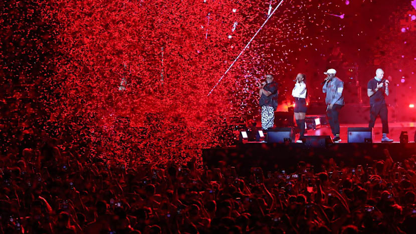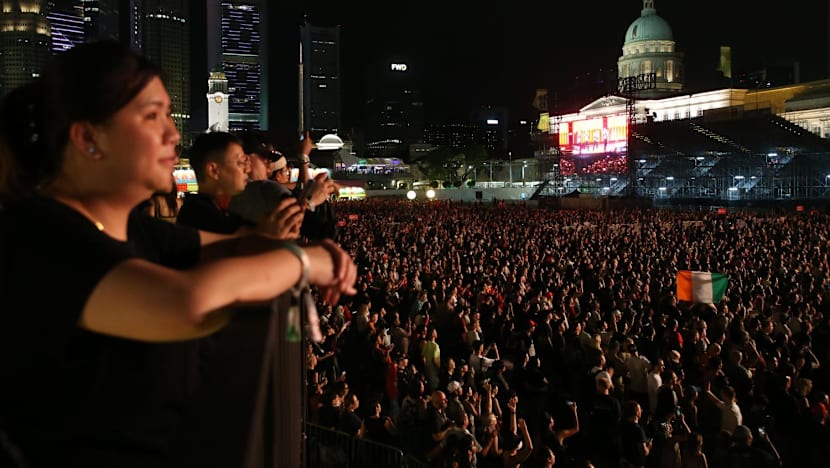 Singapore Grand Prix ticket-holders walking along the Esplanade bridge’s underpass at the Marina Bay circuit park on Oct 1, 2022.