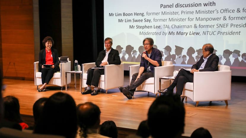 Joining him at the panel discussion was Mr Lim Swee Say, also a former Cabinet minister and chief of NTUC, and Mr Stephen Lee, chairman of the Tripartite Alliance Limited, a company set up by the tripartite partners to handle disputes and promote fair employment practices, among others.