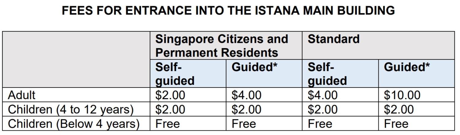 Entry to the grounds will be free for Singapore citizens and permanent residents. All other visitors above the age of four will need to pay an entrance fee of S$2 per person through SGQR.