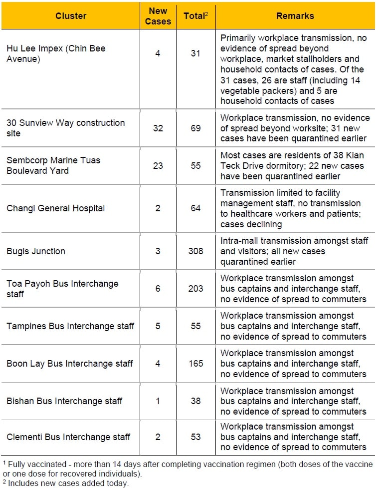 MOH said it was "closely monitoring" 10 large clusters with new cases, which were ringfenced through tracing, testing and isolation.