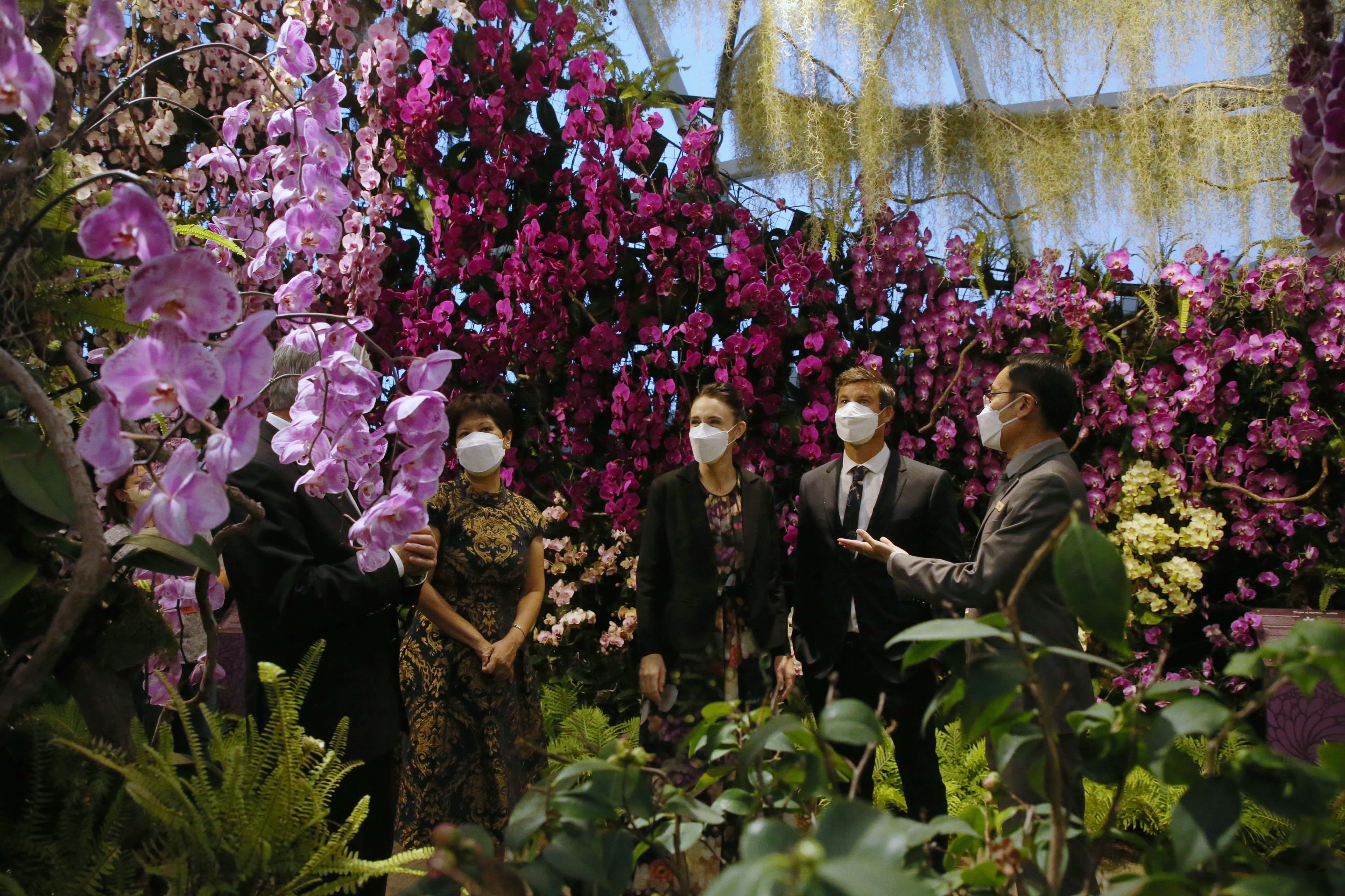 Prior to the press conference, Ms Ardern was hosted to a welcome ceremony at the Istana. She also had a new hybrid orchid, the Dendrobium Jacinda Ardern, named in her honour.