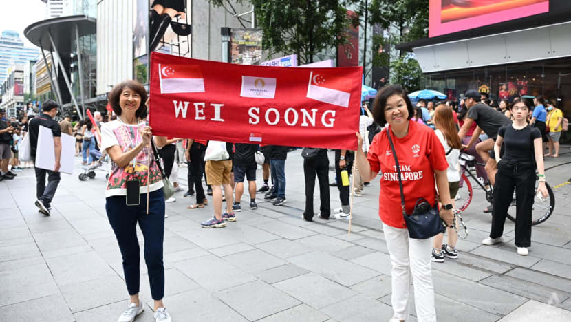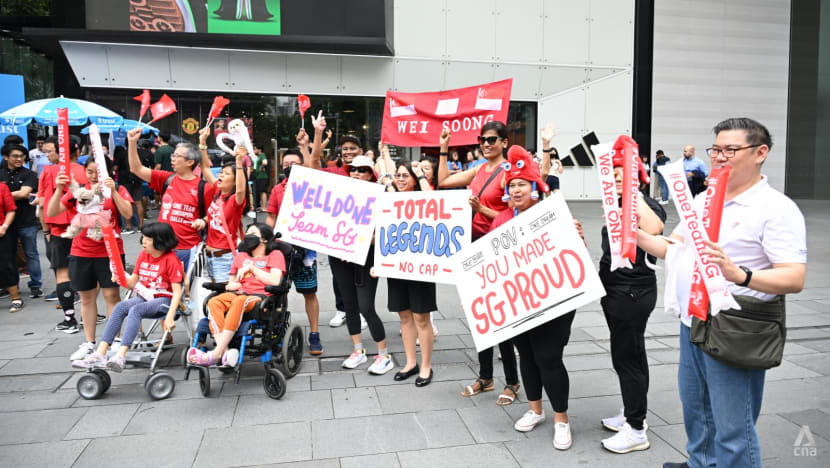 She was holding a big red banner with Singapore flags and her nephew’s name emblazoned on it.