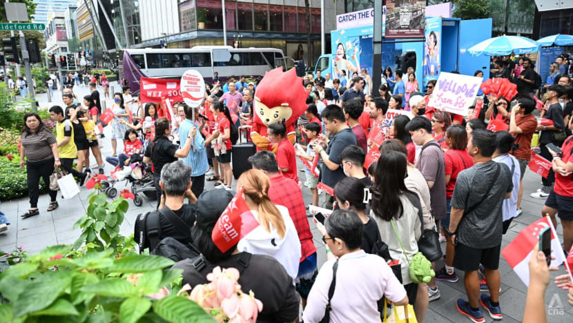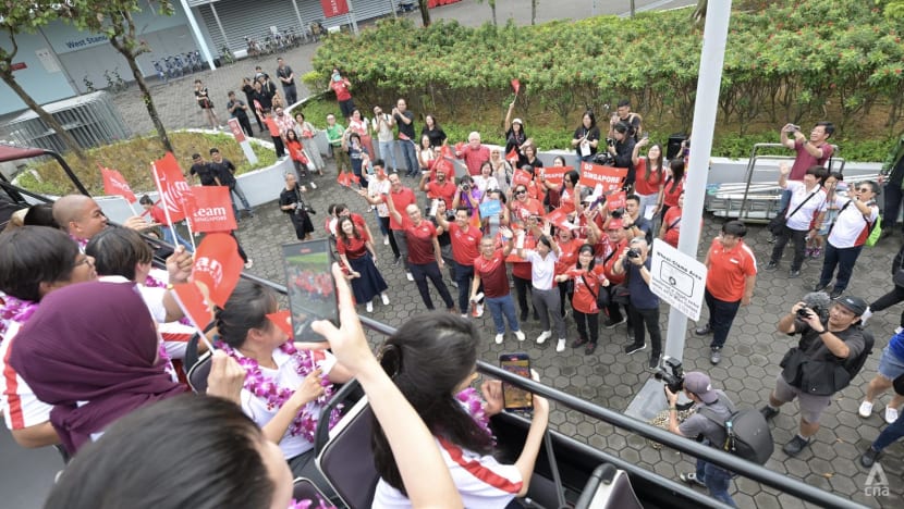 There was a celebratory mood about 30 minutes before the bus departed, with about 100 Team Singapore supporters, mostly dressed in red, gathering to cheer the athletes on.