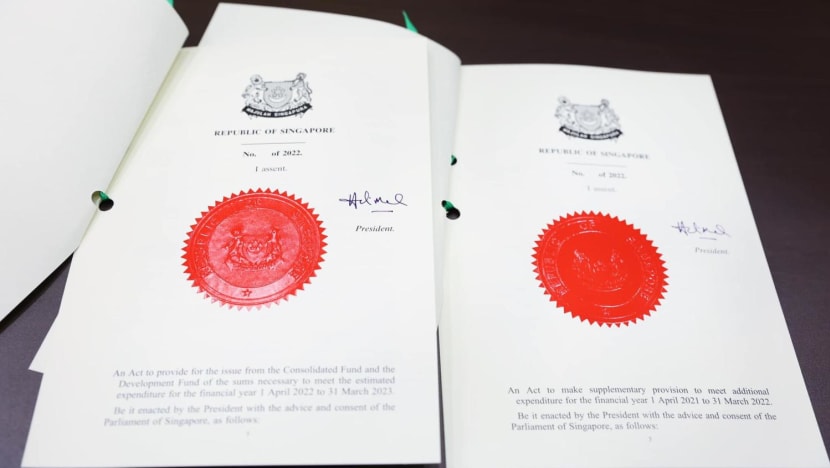 President Halimah Yacob signing the Supply Bill for FY2022 on Mar 23, 2022. (Photo: MCI/Liu Ying)