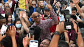 Mr Tan Kin Lian congratulated Mr Tharman after a sample count showed Mr Tharman in the lead with 70 per cent of the vote on Sep 1, 2023. (Photo: CNA/Raydza Rahman)