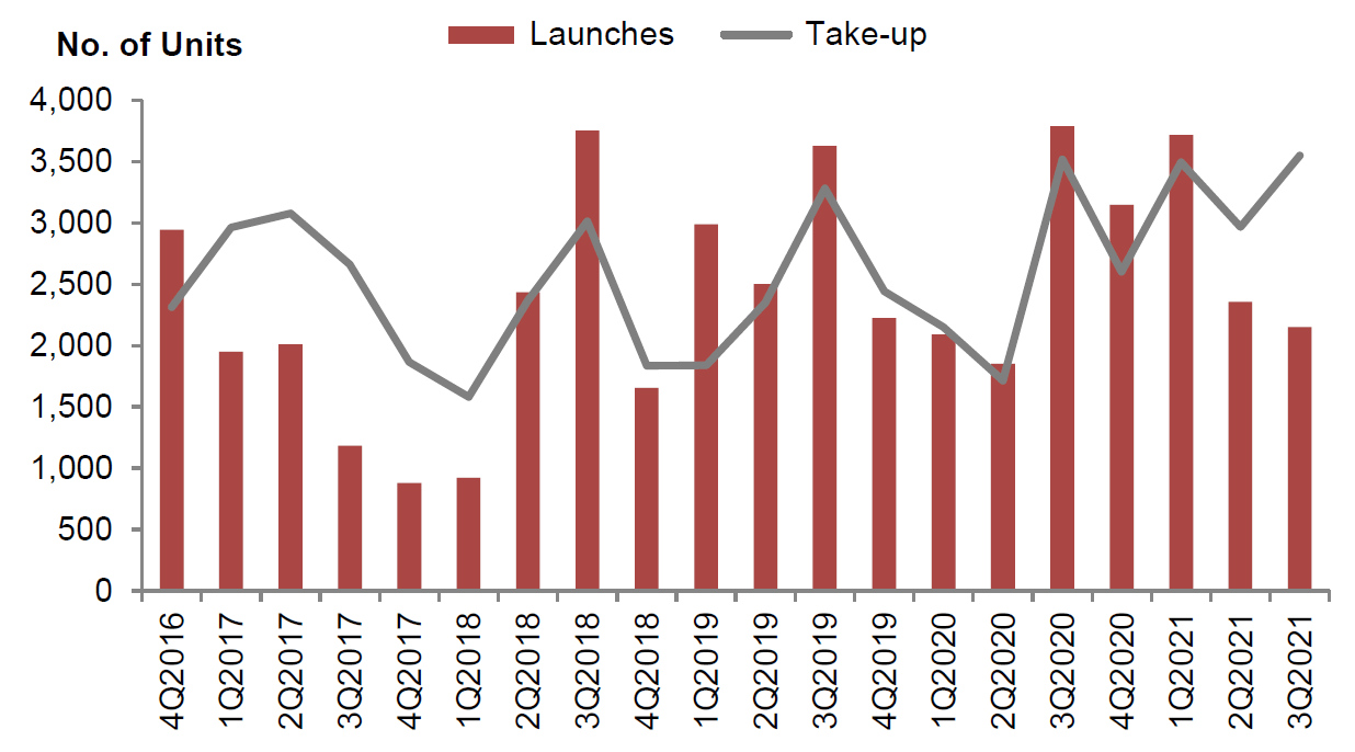 Overall, developers launched 2,149 uncompleted private homes (excluding executive condominiums) in the third quarter, compared with 2,356 units between July and September. They sold 3,550 units in the third quarter, compared with the 2,966 in the previous quarter.
