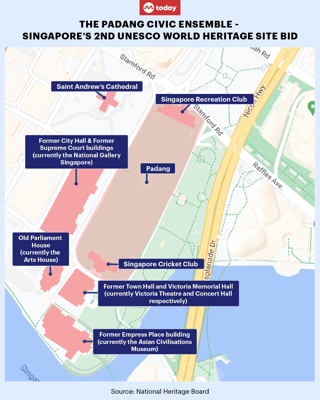 NHB said the Padang Civic Ensemble is "most likely" to fulfil the criteria of being "an outstanding example of a type of building, architectural or technological ensemble or landscape which illustrates a significant stage in human history".