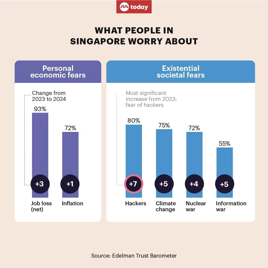 The Edelman study found that more Singapore respondents worry about the following compared to the year before: